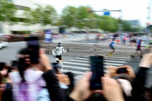 Un an plus tard, les robots humanoïdes se sont élancés à nouveau dans les rues de Beijing pour parcourir les 21,0975 km du semi-marathon. Cette année, le nombre d’équipes a bondi : de 20 l’an dernier à plus de 100, avec des participants venus d’Allemagne, de France, du Portugal et du Brésil.