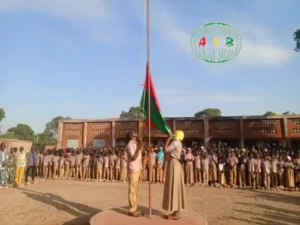 Les élèves, le personnel de l’établissement, les FDS et les responsables des différentes couches sociales ont fait le déplacement autour du mât du CEG de Solenzo pour assister à cette montée.